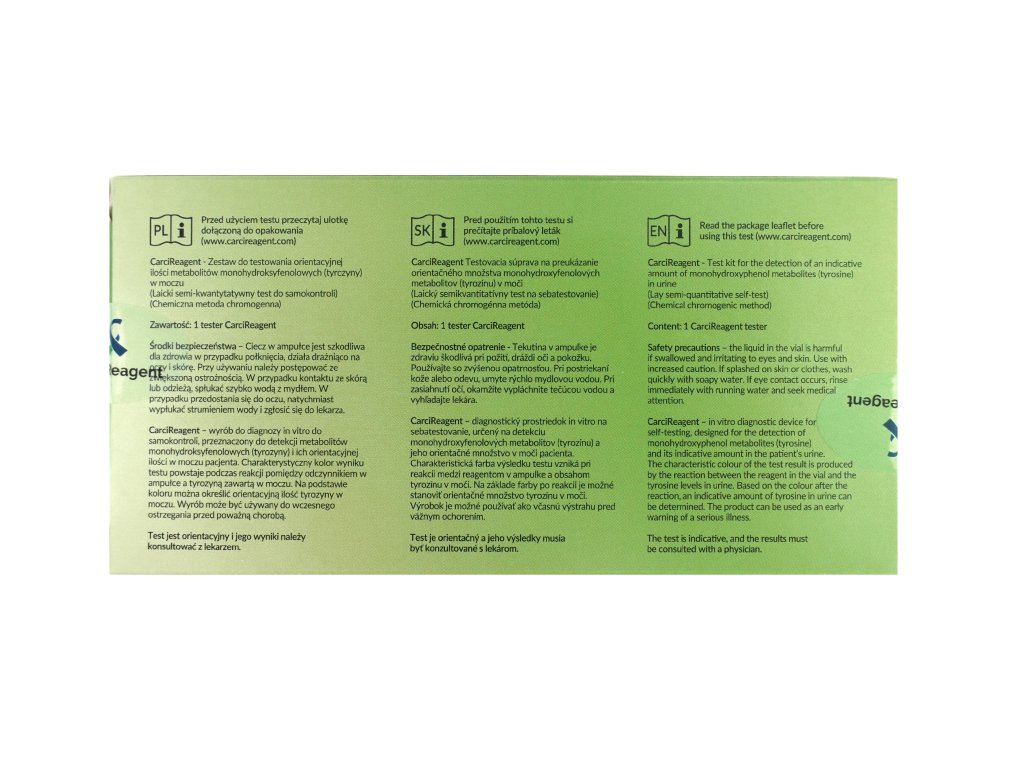 Carci Reagent je test na zistenie orientačného množstva tyrozínu v moči. Tyrozín je jednou z 20 základných proteínogénnych aminokyselín a môže slúžiť ako prenášač pre rôzne typy rakoviny. Test prítomnosť látky odhalí prostredníctvom chemickej reakcie, ktorá vyvolá viditeľné farebné zmeny.